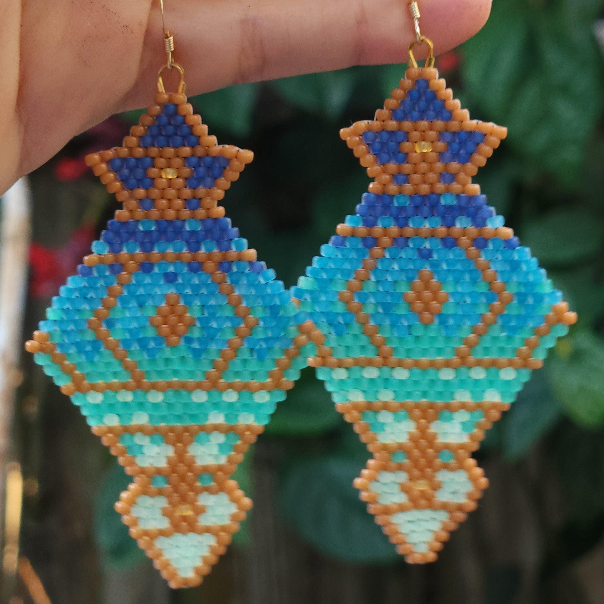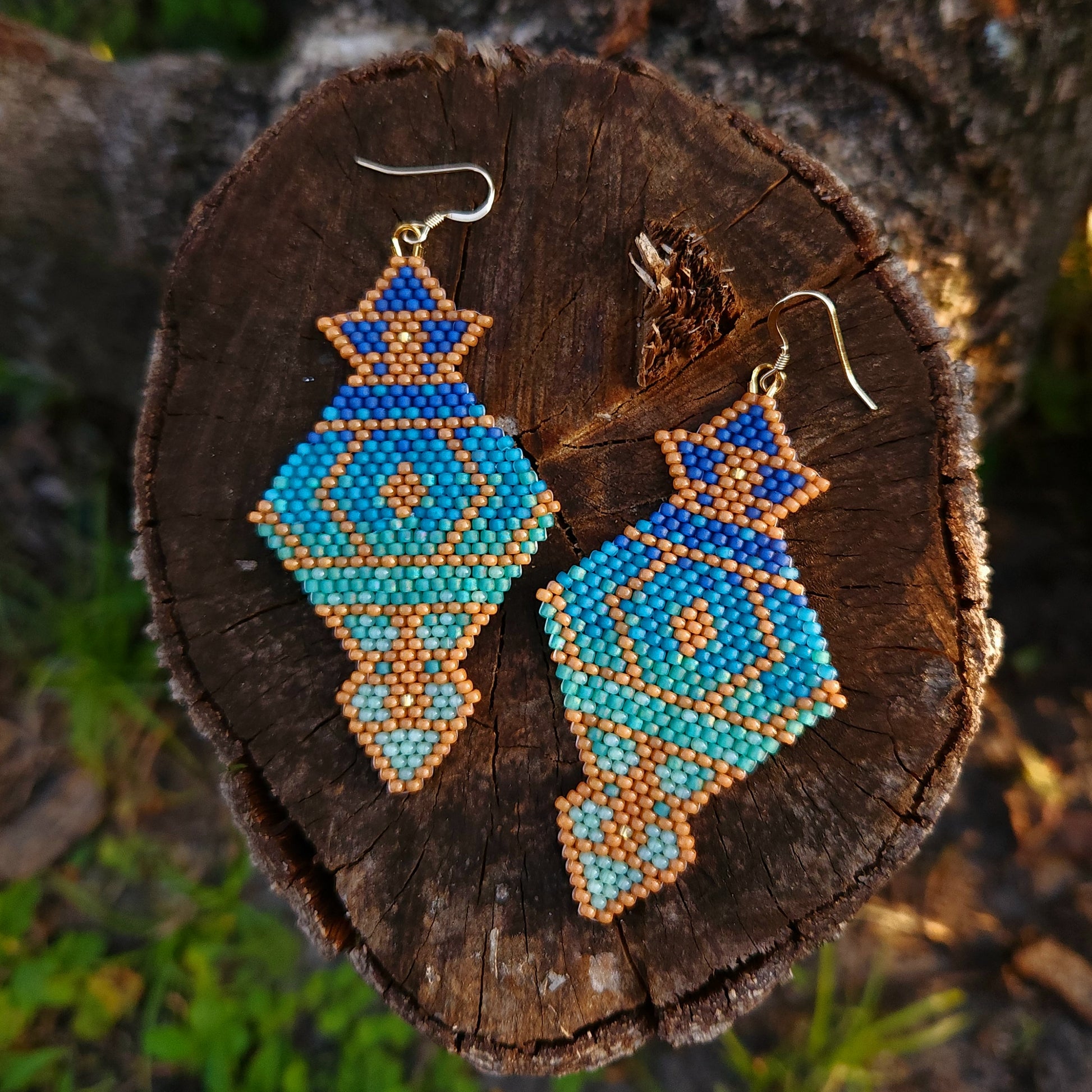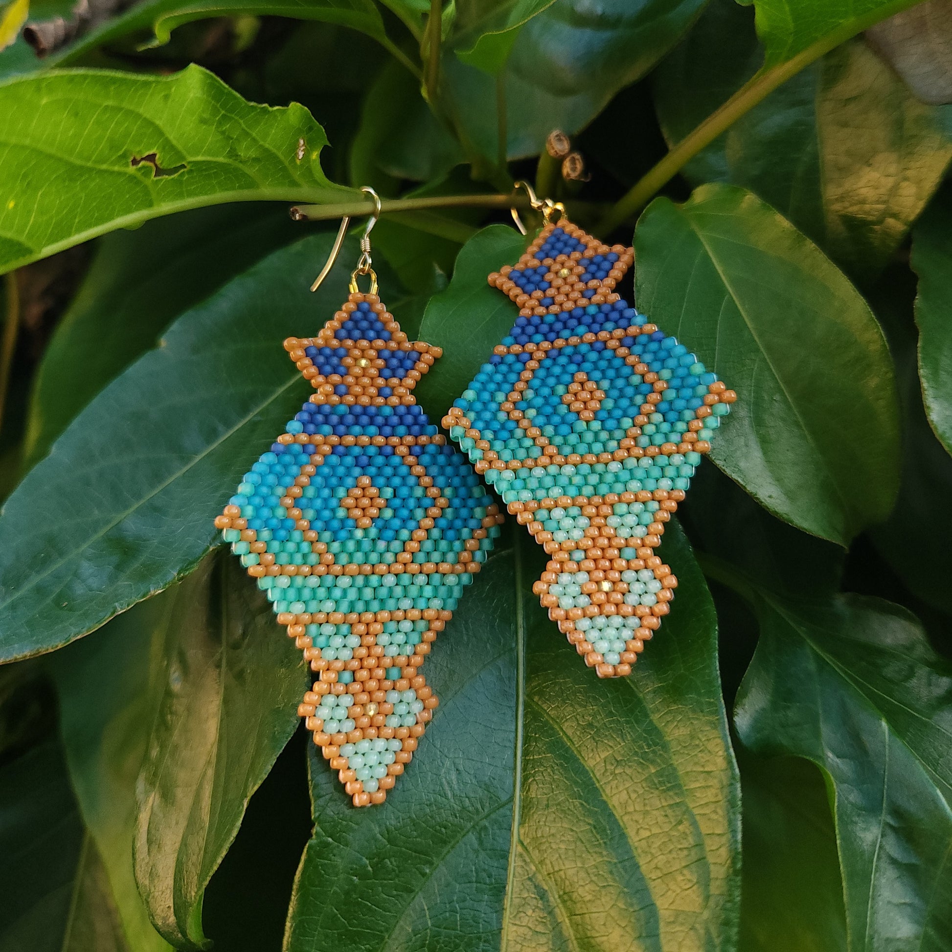 Beautiful Elysian earrings. Geometric design with thoughts of Atlantis in mind. I always imagine Atlantis to have lots of ocean and beach colors. Lots of organic shapes intertwined with geometric lines.