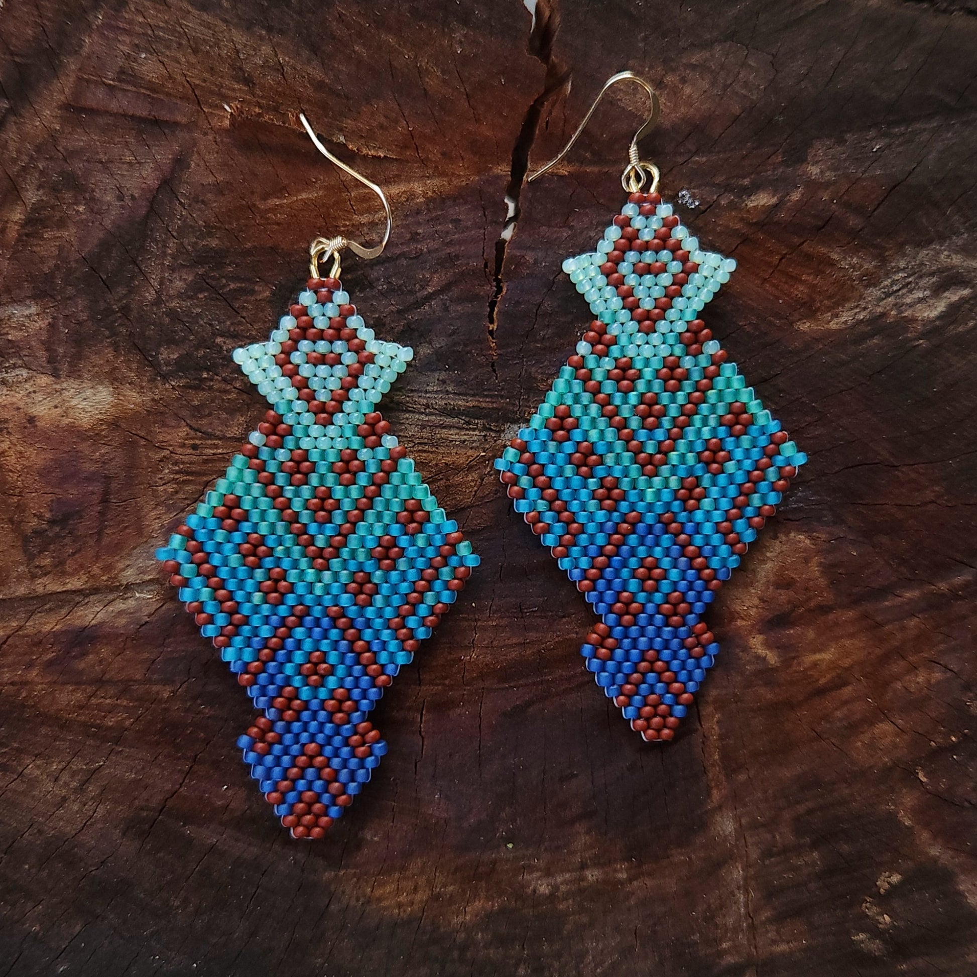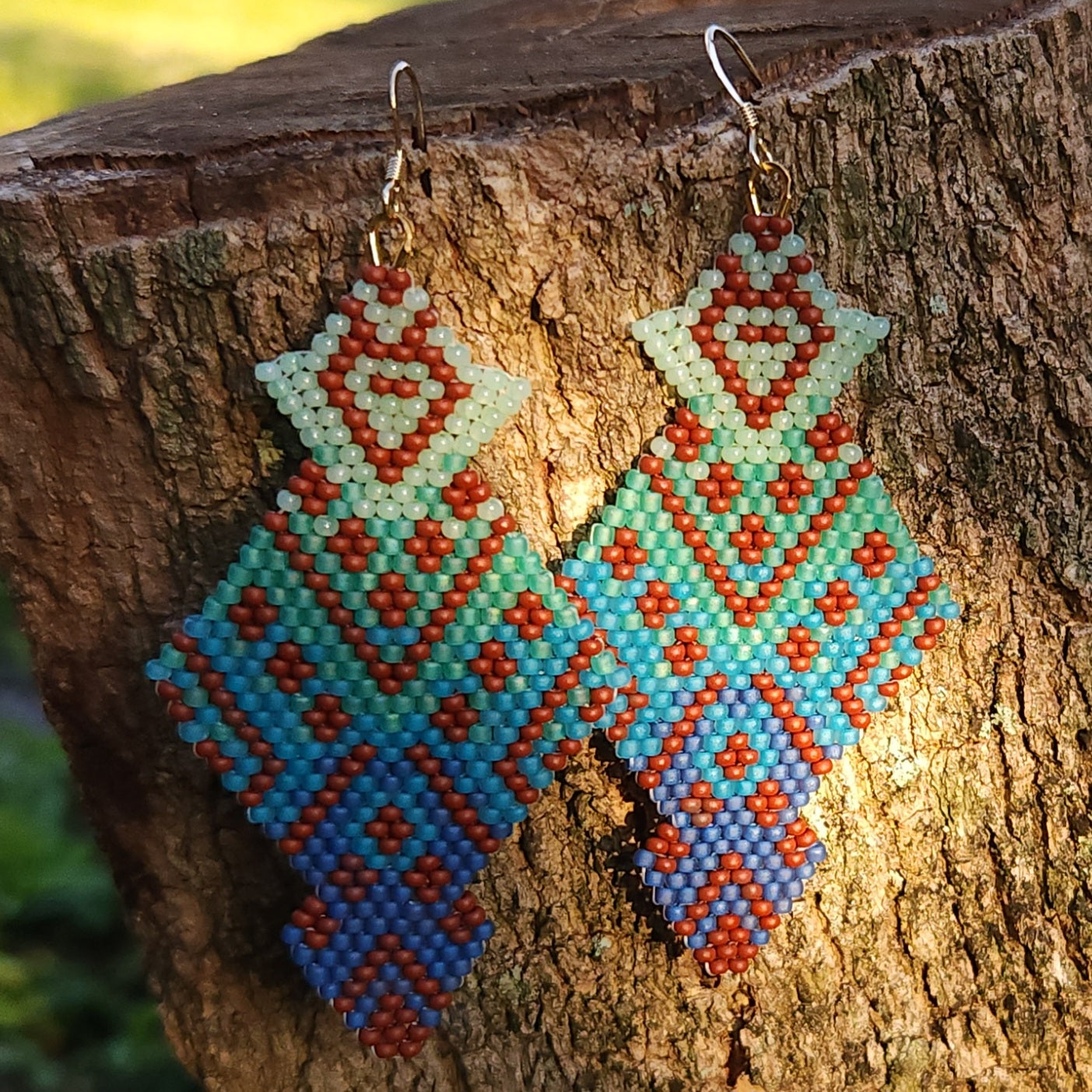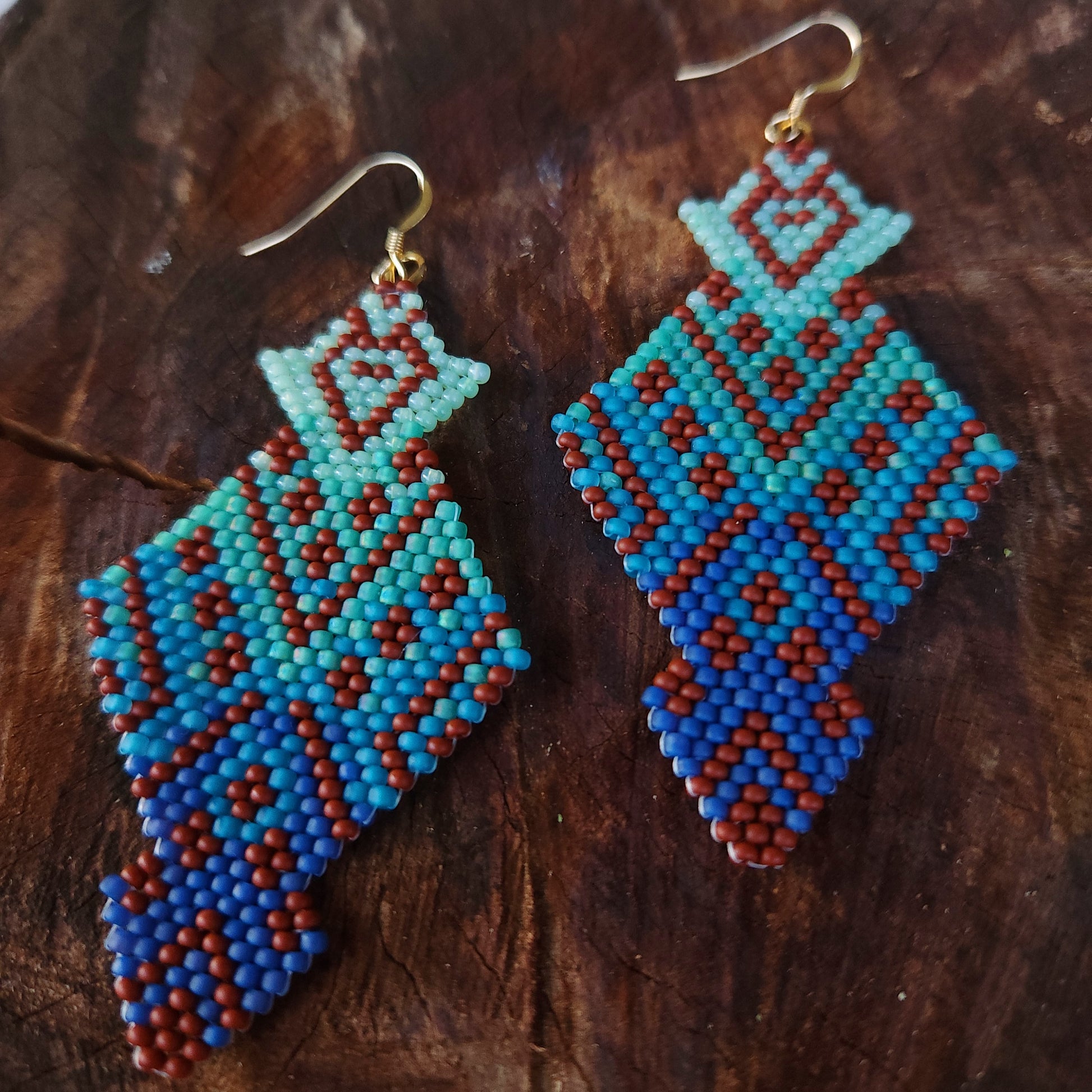Beautiful Jiba earrings. This was a pattern that I envisioned during an afternoon nap! Gorgeous geometry with ocean colors 𖦹